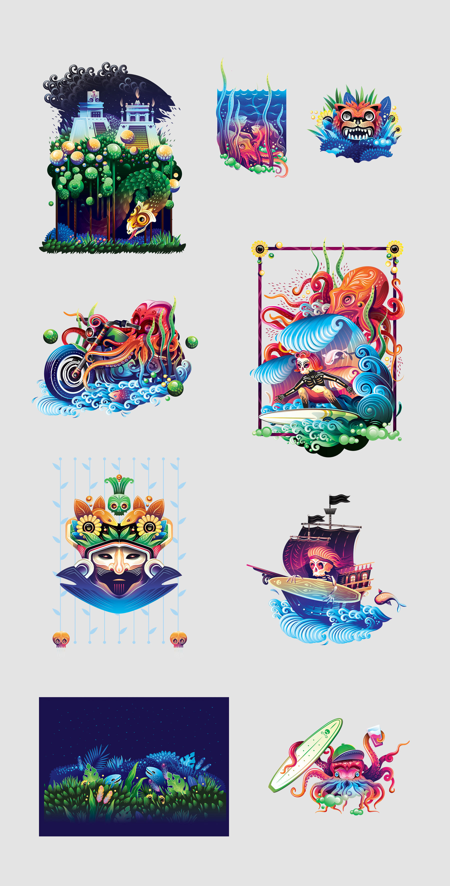 Collection of illustrations created for the clothing company