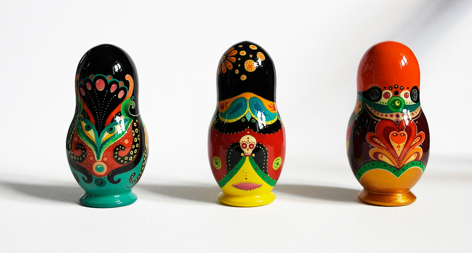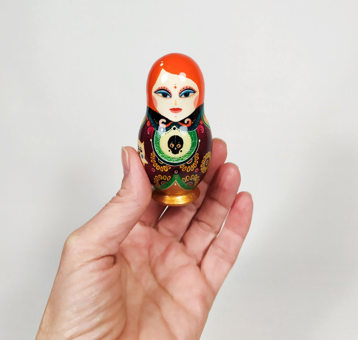 Wooden Matryoshka dolls Size: height 75mm Technic: watercolor, tempera, lacquer